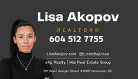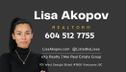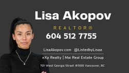 I’m Lisa Akopov, a Vancouver-born Realtor proudly serving Vancouver and the Fraser Valley, with a deep understanding of the local market and its communities. Growing up here gives me unique insight and a genuine connection to the neighborhoods I serve. I’m dedicated to helping clients navigate the market with clarity and confidence, making real estate feel strategic, informed, and stress-free — whether you’re buying your first home or selling a property.